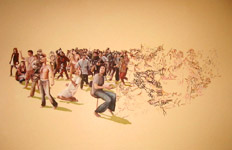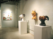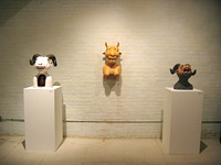 Kenjirou Kitade presents three bust pieces of anthropomorphized sheep. In his work, the subject, "Sheep", has been used as a metaphor to demonstrate human shortcoming. There is a similarity between sheep and human society, since mankind has domesticated sheep from ancient time. He says he can present human frailty in the guise of sheep. Each bust piece has an extreme facial expression on its face, and it reveals what we truly look like under the mask we put in our society.