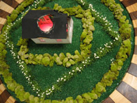 Russell Maschmeyer presents a sculpture of a little burned house in an artificially designed garden placed on the table. He is interested in combining cinematic fiction with his own personal history and emotions in order to express blurred boundary between dream and reality. By depicting his own dream and nightmare as if one of the scenes from the film, he attempts to present his struggle between intellectually composed self and the confused state of his emotions.